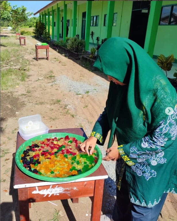 Pontianak – Suasana belajar di MAN 3 Pontianak semakin hidup dengan adanya praktik pembuatan olahan makanan sederhana. Dalam kegiatan yang dilaksanakan di halaman madrasah, Bu Syamsuryana selaku guru PKWU tampak menyiapkan camilan berbahan dasar agar-agar berwarna-warni. Aktivitas ini menjadi bagian dari pembelajaran keterampilan sekaligus melatih kreativitas siswa dalam mengolah bahan makanan yang sehat dan menarik.