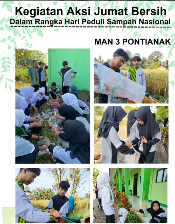 MAN 3 Pontianak menggelar kegiatan dalam rangka memperingati Hari Peduli Sampah Nasional 2025. Kegiatan ini melibatkan seluruh warga madrasah, mulai dari guru, tenaga kependidikan, hingga siswa yang antusias berpartisipasi.