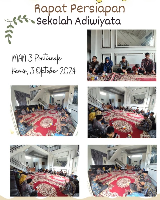Pontianak – MAN 3 Pontianak menggelar rapat persiapan program Sekolah Adiwiyata pada Kamis, 3 Oktober 2024. Kegiatan yang berlangsung di aula madrasah ini dihadiri oleh pimpinan, dewan guru, serta staf tata usaha.